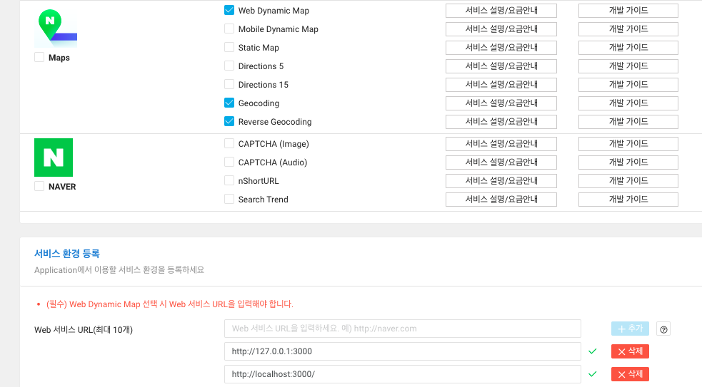 - Reverse Geocoding : 좌표를 통한 지번주소/도로명주소 등 반환할때 필요.